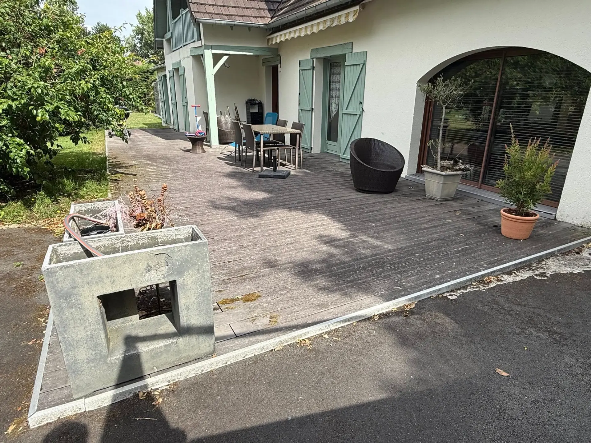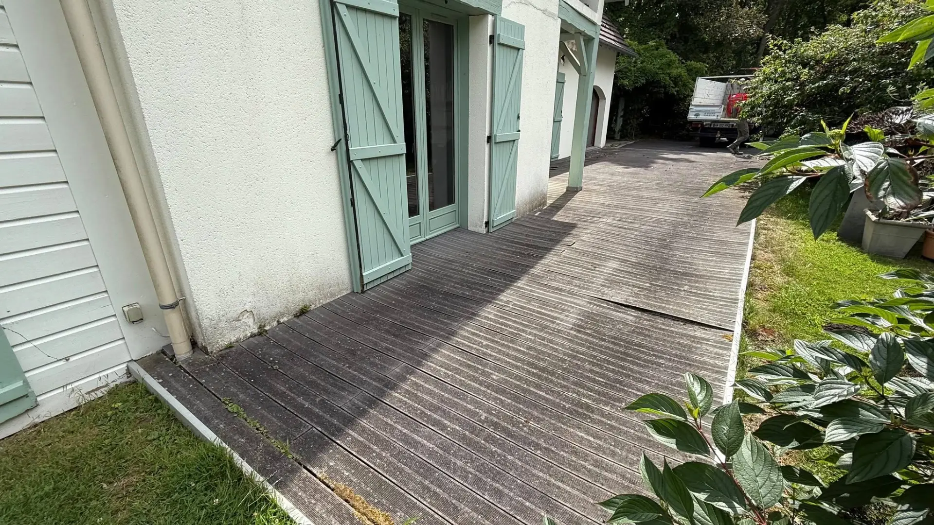 Avant d'entreprendre cette belle rénovation, la terrasse existante présentait des signes d'usure évidents. L'ancien revêtement en bois composite montrait des traces de vieillissement, avec des lames décolorées et une structure qui nécessitait une intervention complète.