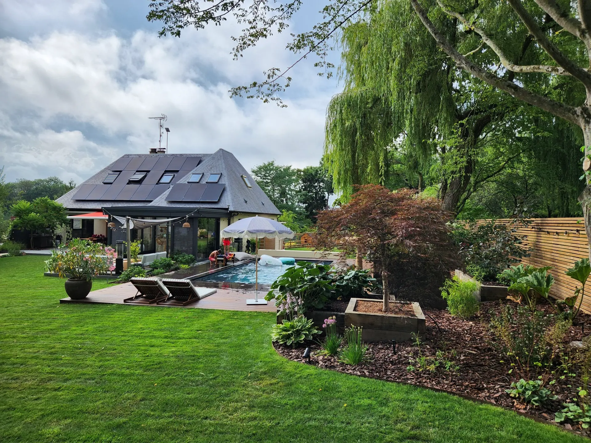 Cette création complète illustre parfaitement notre savoir-faire en matière d'aménagement paysager haut de gamme. Le projet combinait plusieurs défis techniques : la création d'une piscine moderne, l'intégration harmonieuse de zones de détente et la mise en place d'un potager productif.