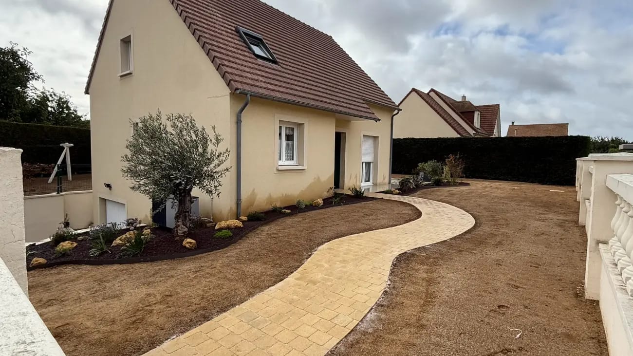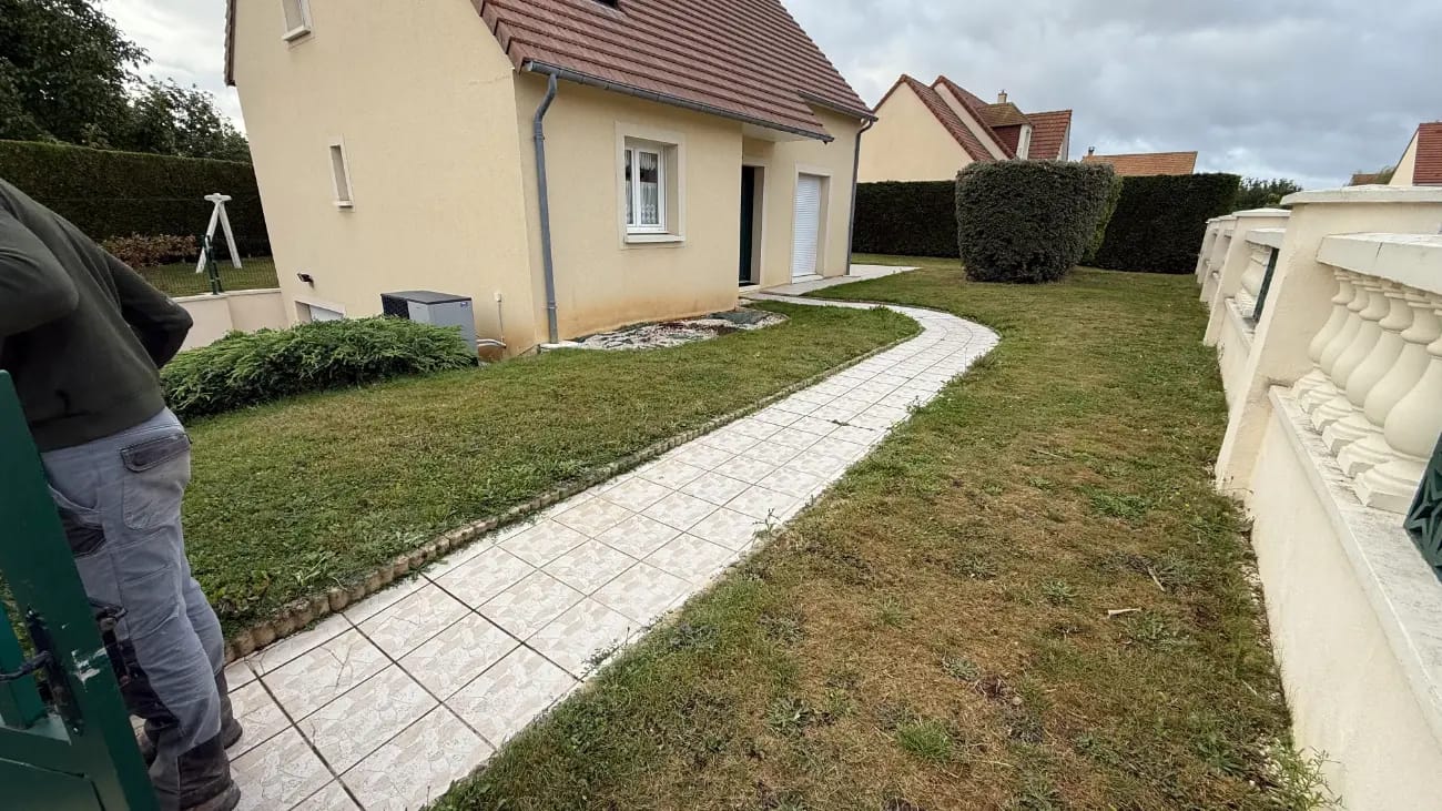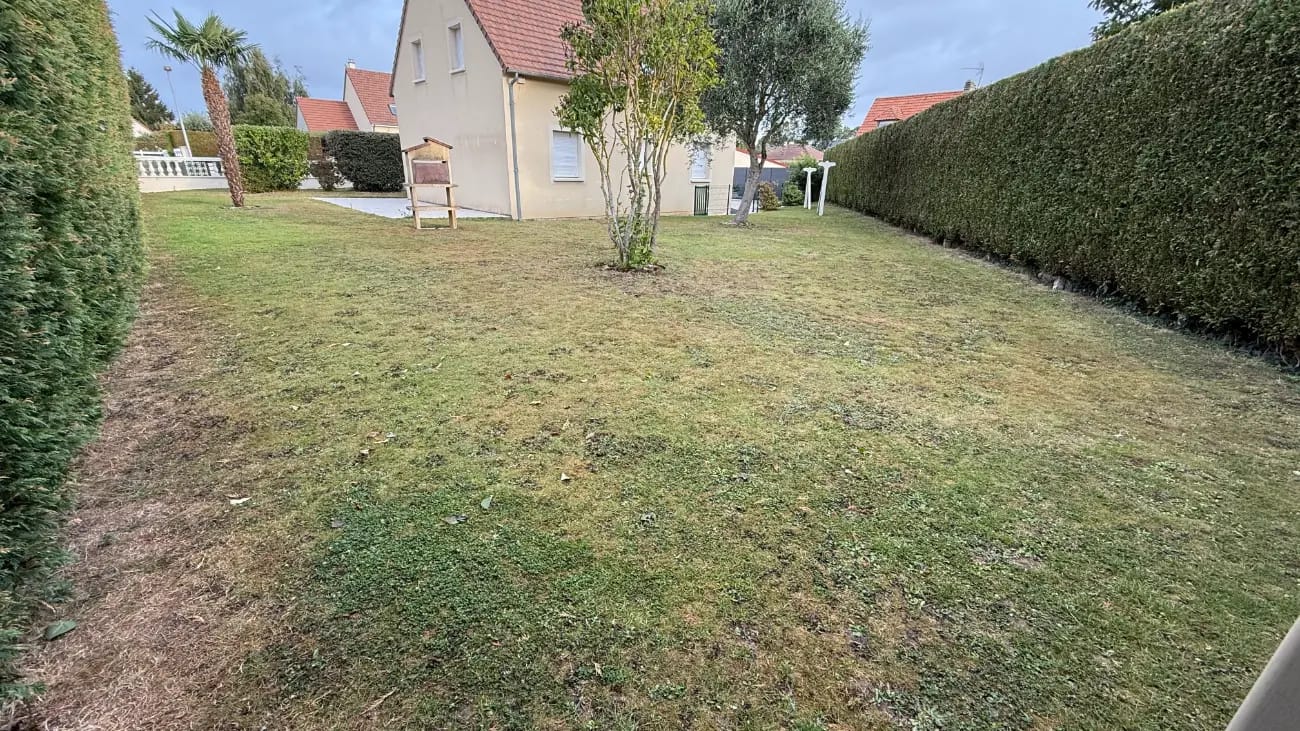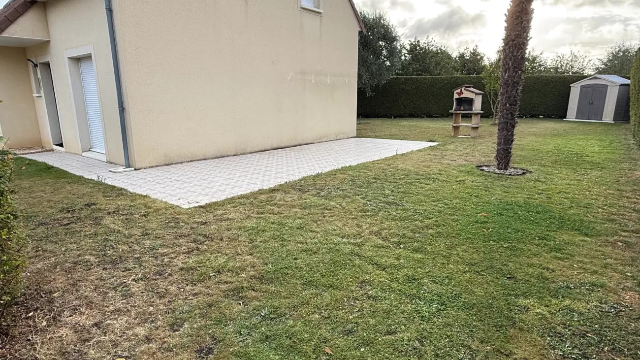 Ce projet montre la rénovation complète d'un jardin autour d'une maison individuelle. Le terrain disposait déjà d'une pelouse et de quelques aménagements, mais les propriétaires souhaitaient créer un espace plus moderne.