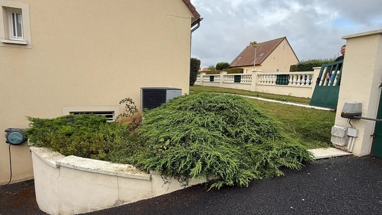 Les anciens massifs ont été supprimés pour laisser place à de nouveaux aménagements paysagers. Le travail a inclus l'évacuation des anciennes plantations et la préparation de nouvelles zones de plantation.